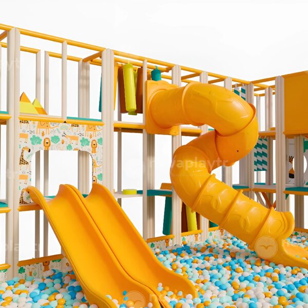 - ✅ Multi-level soft play frames with spiral and wave slides