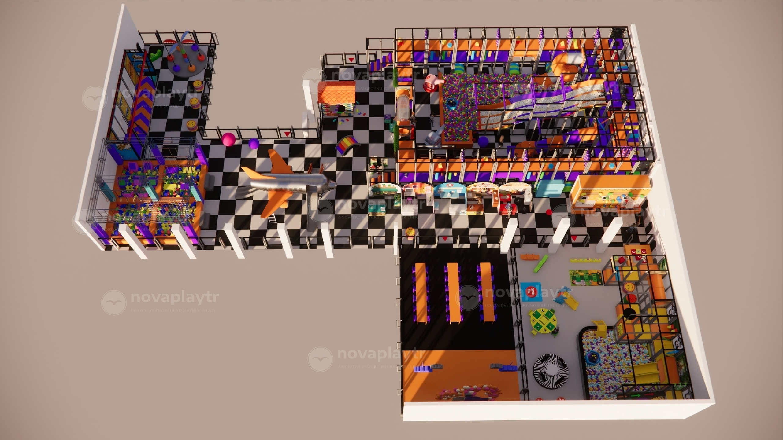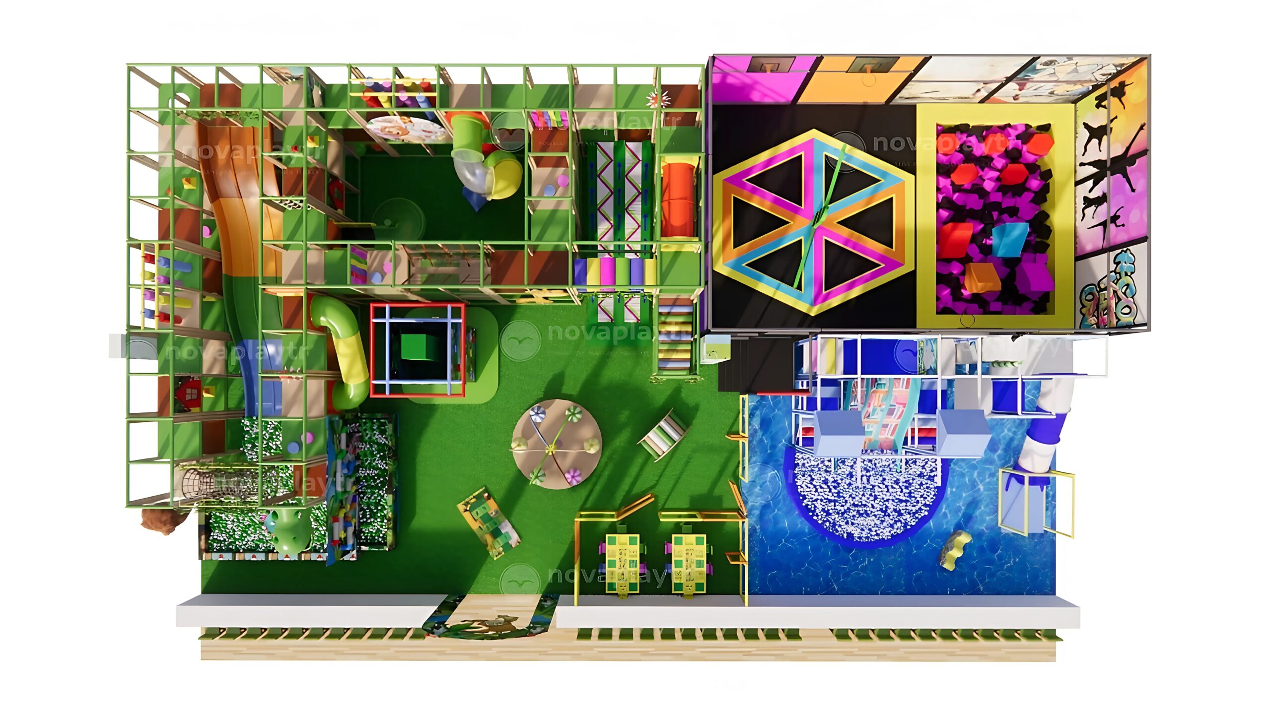 ✅ Interactive Zones: Including ball pits, sensory panels, and themed play areas.
