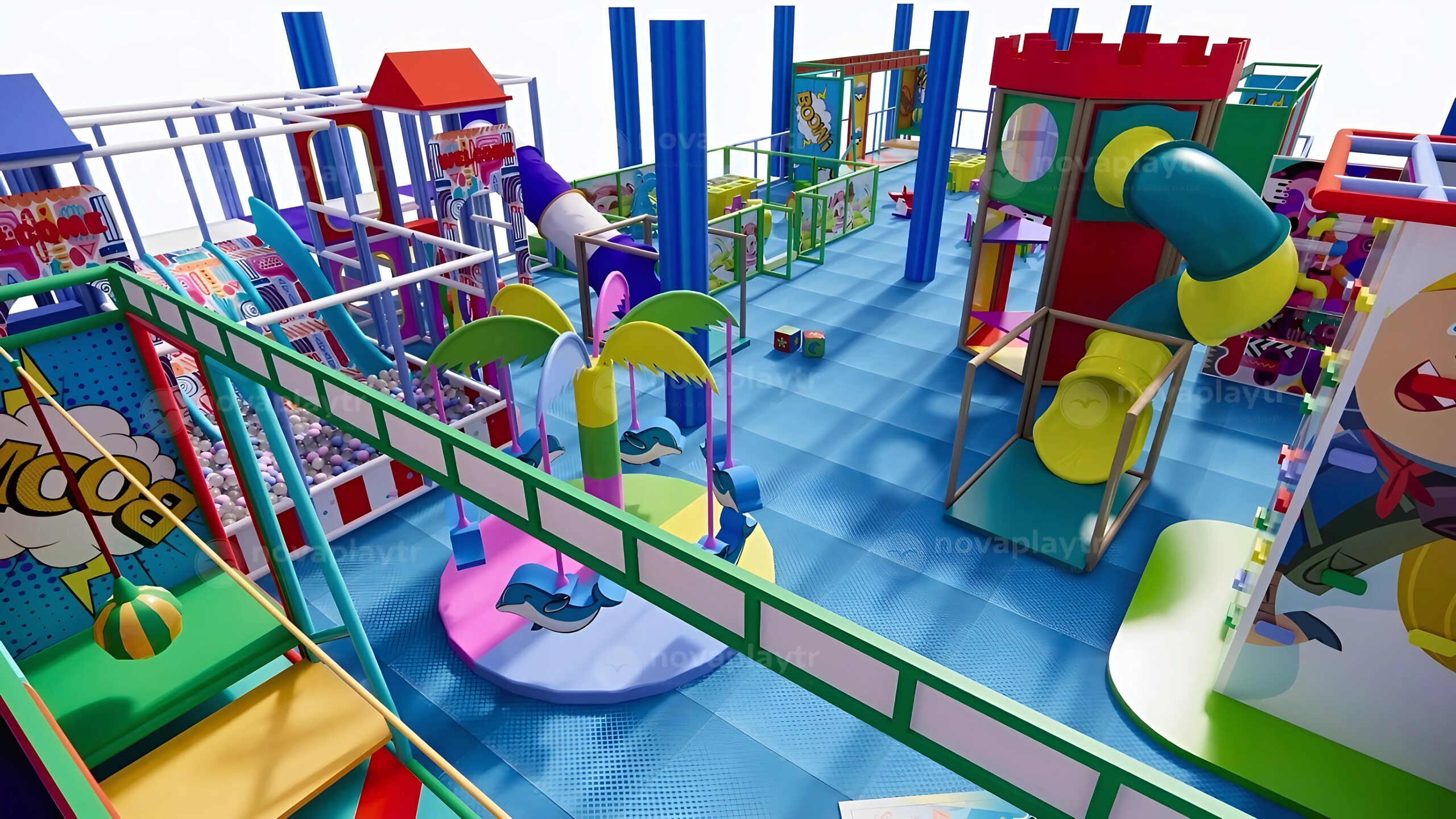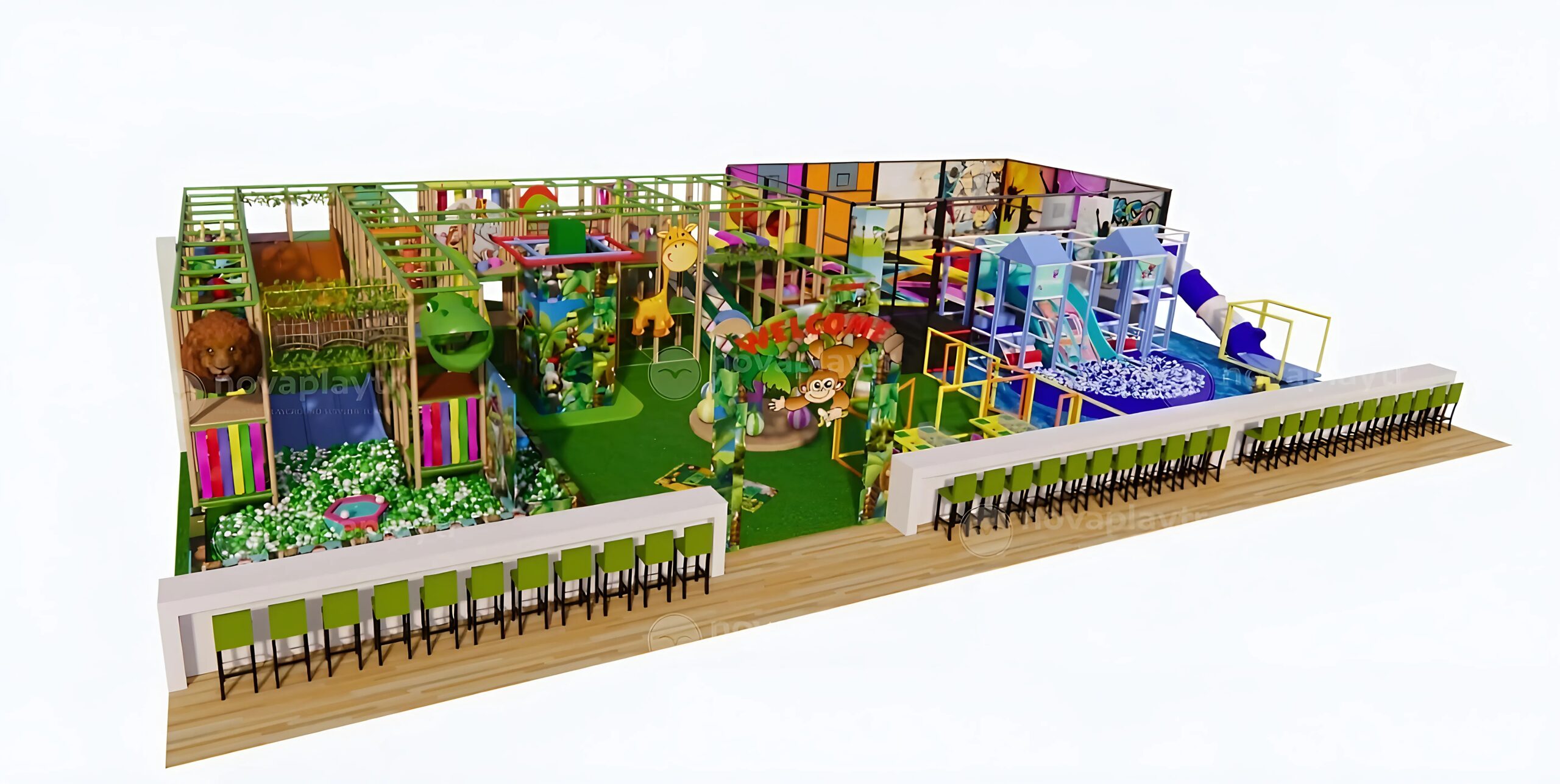 At NovaPlay, we specialize in the design, manufacturing, and installation of indoor playgrounds ranging from 300 to 500 square meters.Indoor playgrounds ranging from 300 to 500 square meters. Our custom-built play areas are tailored to meet the unique needs of shopping malls, family entertainment centers, hotels, and educational institutions.