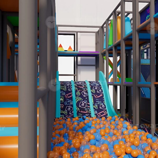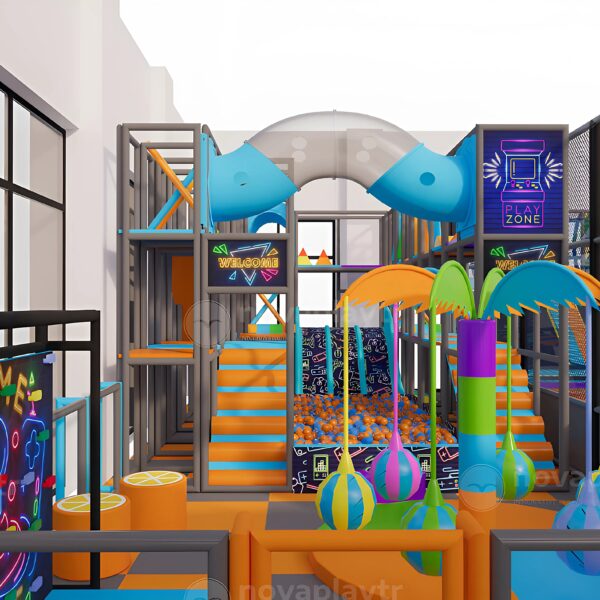 ✅ Innovative neon slides and RGB-integrated tunnel slides: Eye-catching slide designs featuring dynamic LED lighting systems, adding a futuristic, immersive experience that captivates children and enhances the visual appeal of the entire play area.