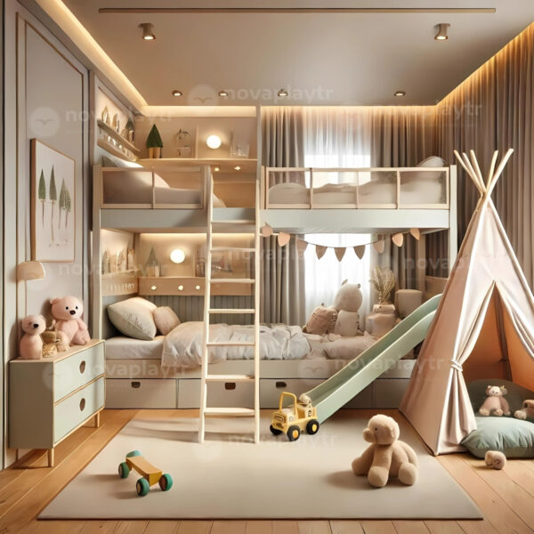 Looking to design a creative and safe indoor playground right inside your child’s bedroom? At NovaPlay Turkey, we specialize in crafting custom-designed kids’ bedroom playgrounds that perfectly balance fun, safety, and aesthetics. Our designs maximize space with innovative layouts, soft play modules, mini slides, climbing features, and interactive elements — all tailored to fit your room’s dimensions and complement your interior décor.