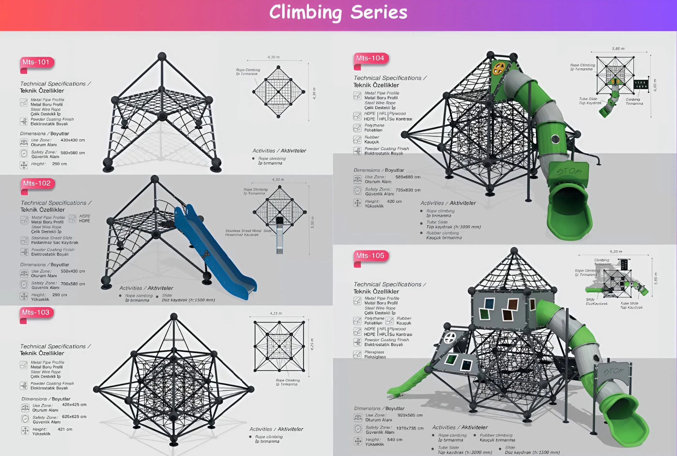 NovaPlay Turkey’s Climbing Playground offers innovative and engaging climbing structures designed to develop children’s strength, coordination, and balance. Crafted with premium materials and advanced manufacturing techniques, our climbing playgrounds are ideal for parks, schools, and recreational areas worldwide.