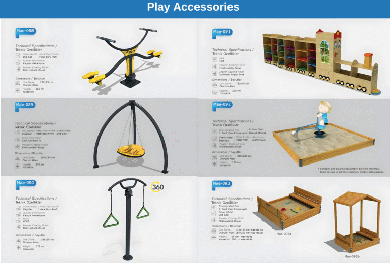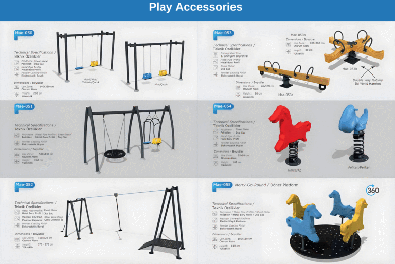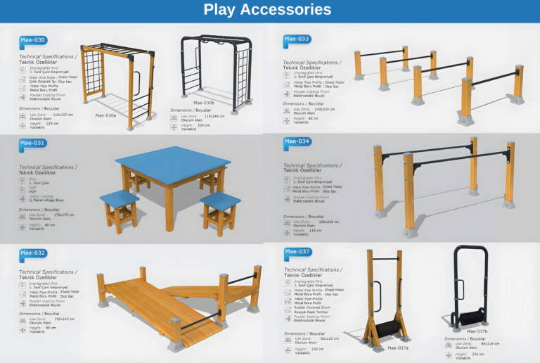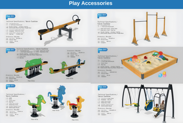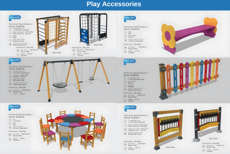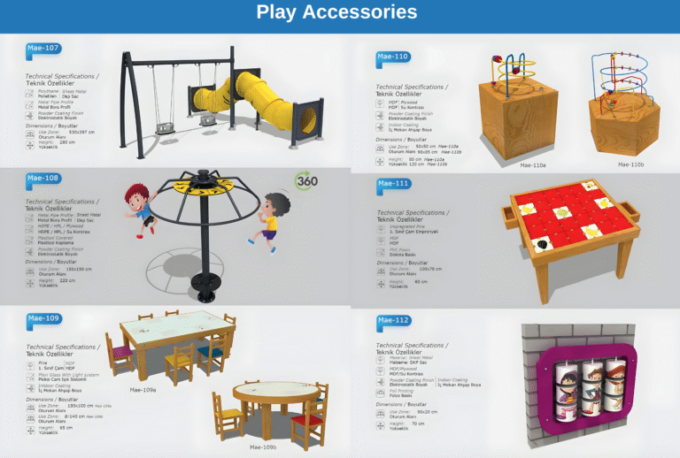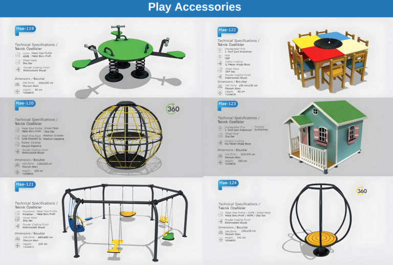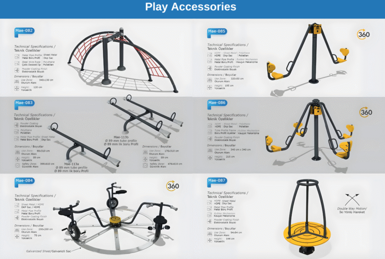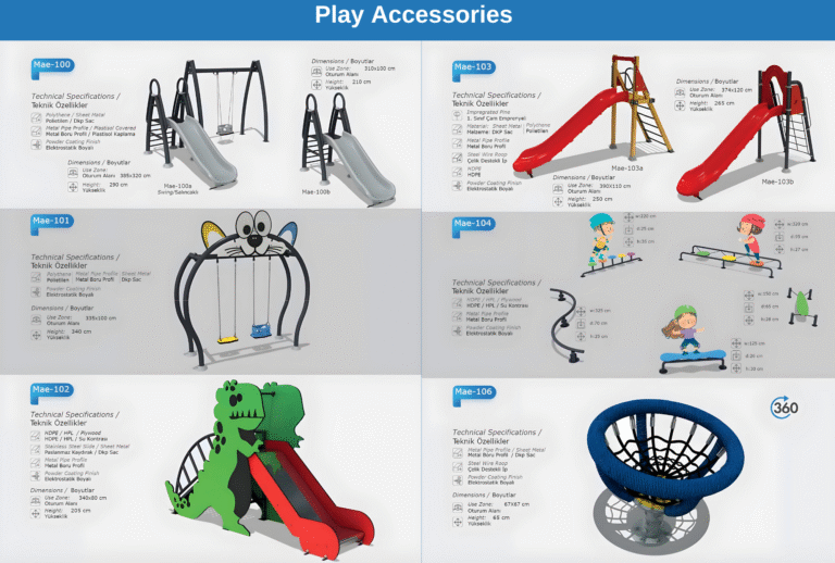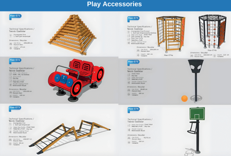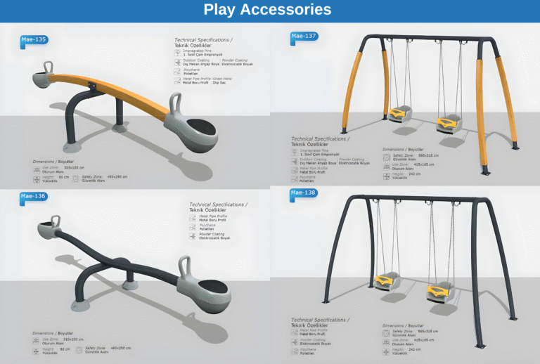 Enhance your outdoor play area with Nova Play Turkey’s Play Accessories, thoughtfully designed to complement and enrich your existing playground equipment. Our accessories are crafted to stimulate imagination, encourage social interaction, and promote physical activity, ensuring that every play session is both enjoyable and beneficial.