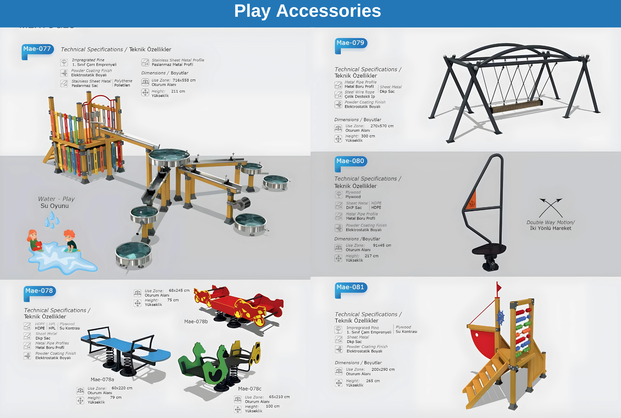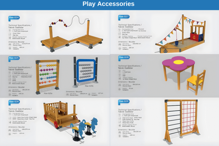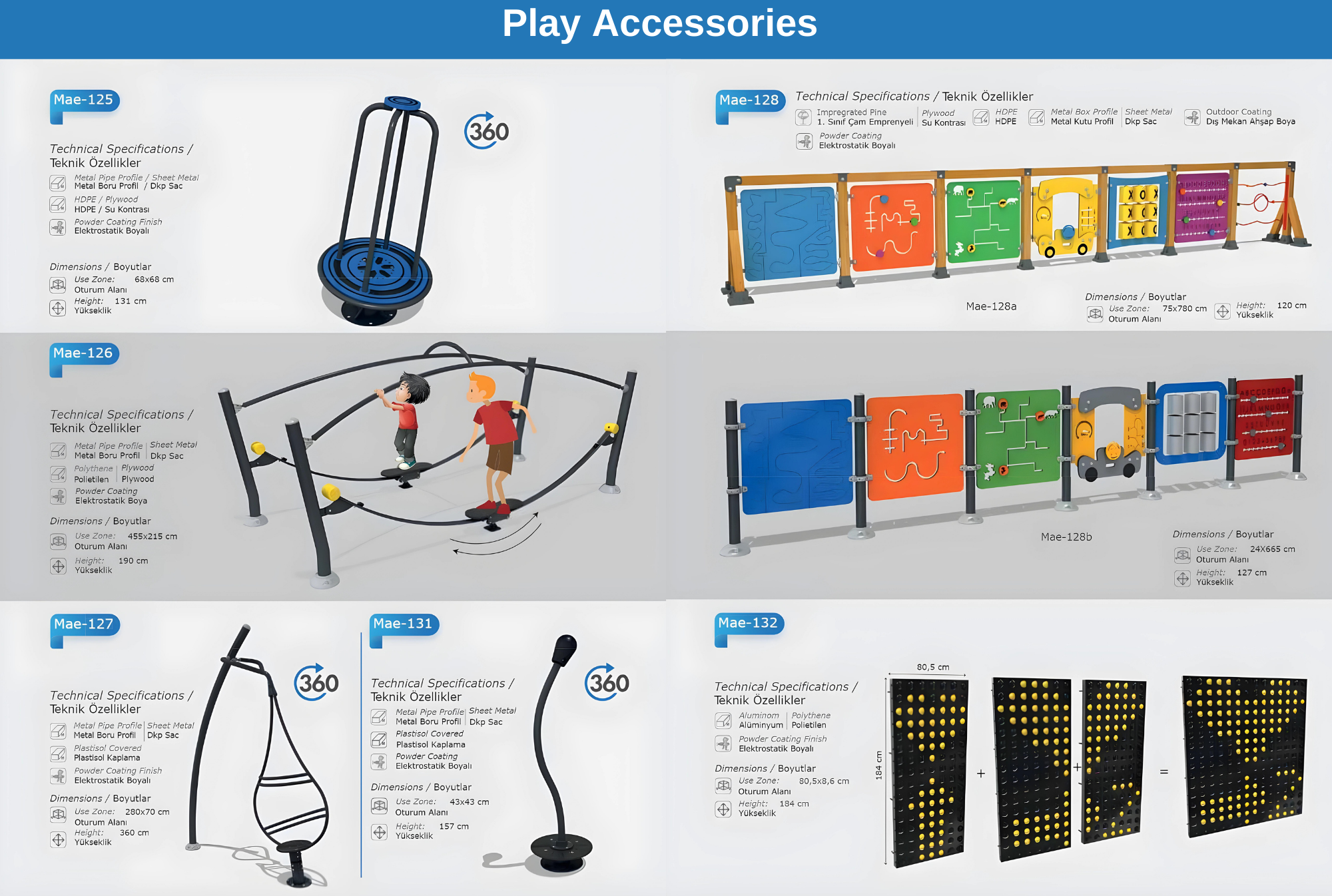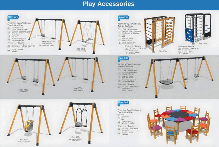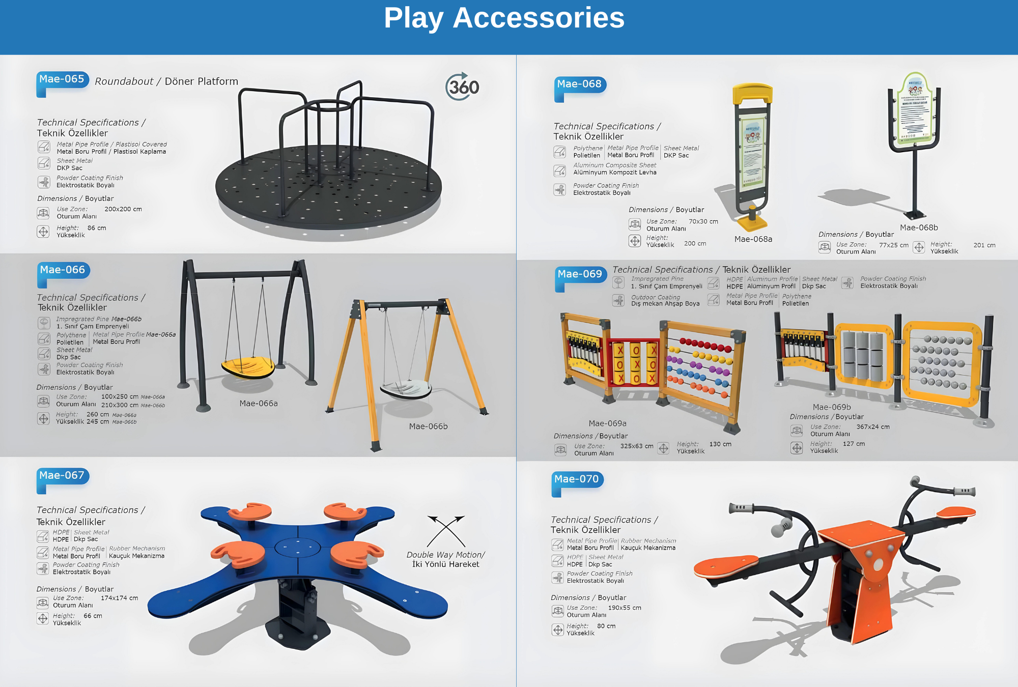 Enhance your outdoor play area with Nova Play Turkey’s Play Accessories, thoughtfully designed to complement and enrich your existing playground equipment. Our accessories are crafted to stimulate imagination, encourage social interaction, and promote physical activity, ensuring that every play session is both enjoyable and beneficial.