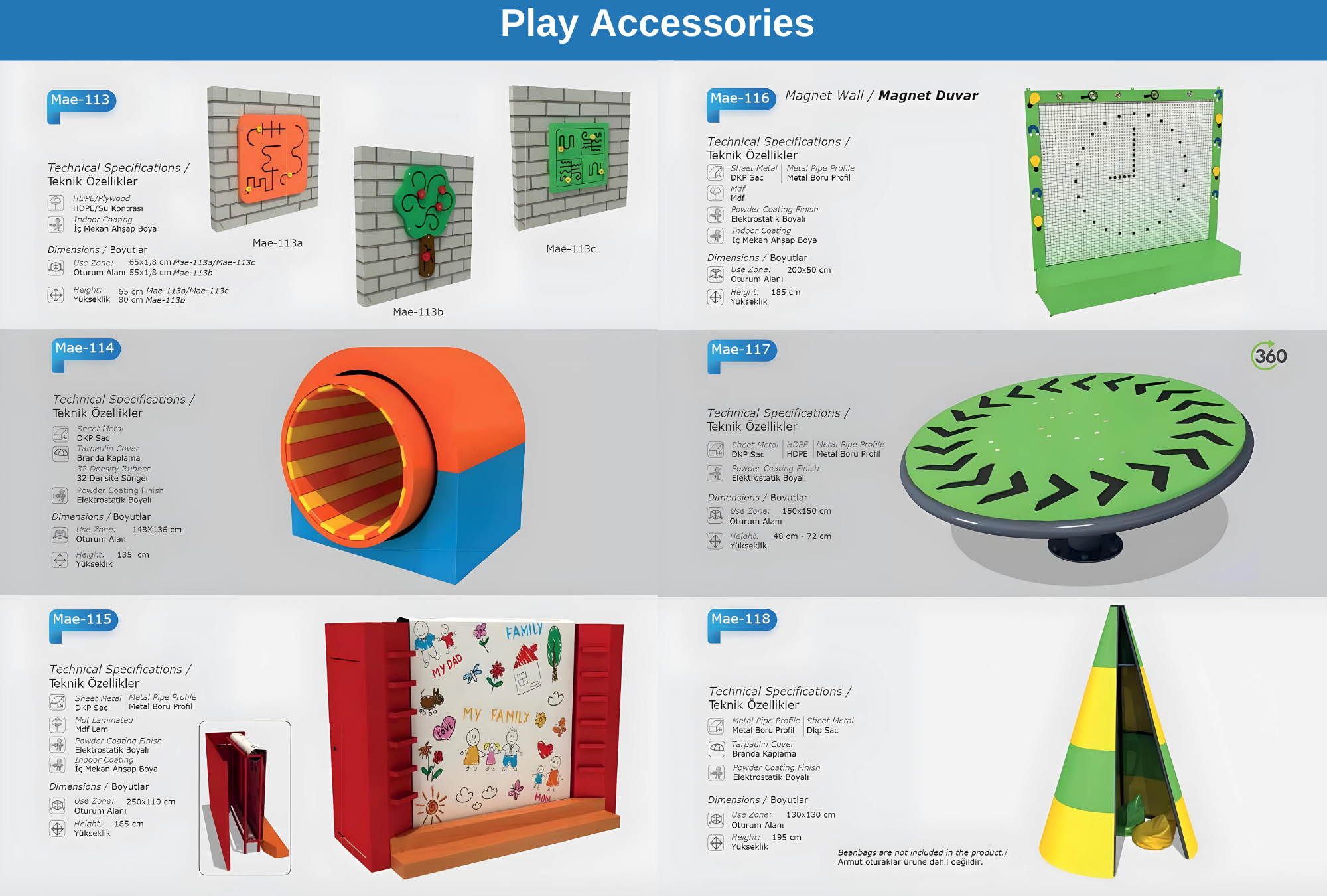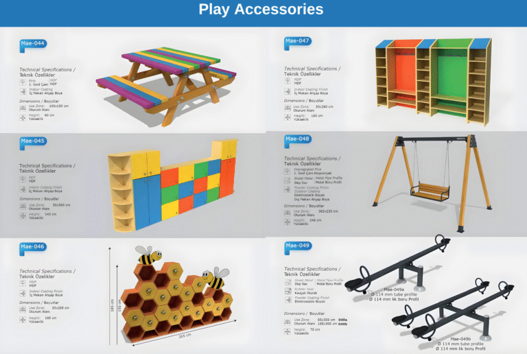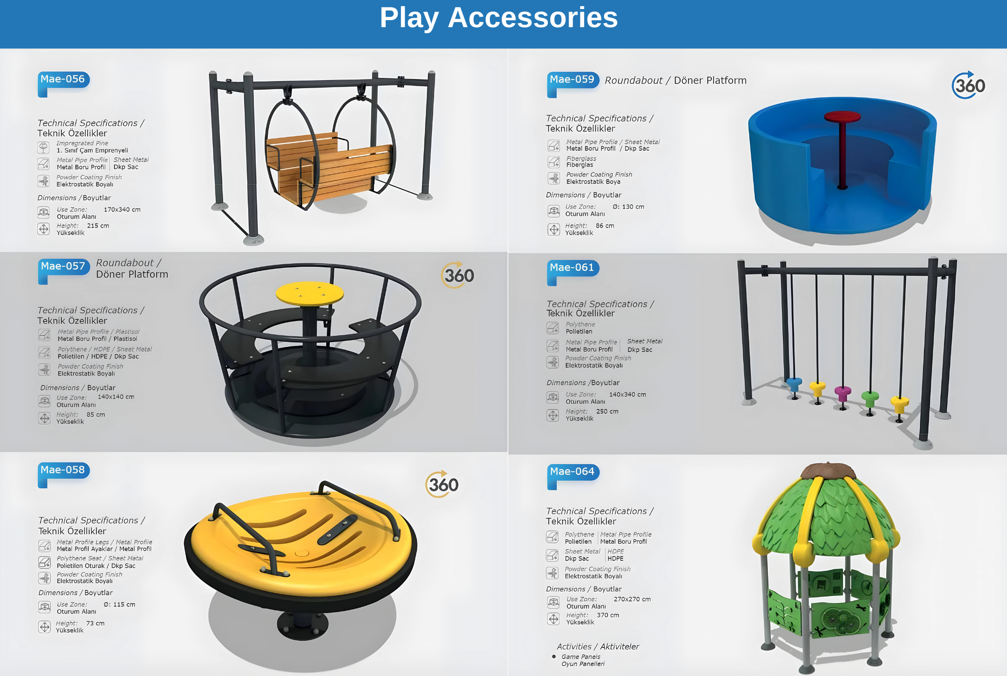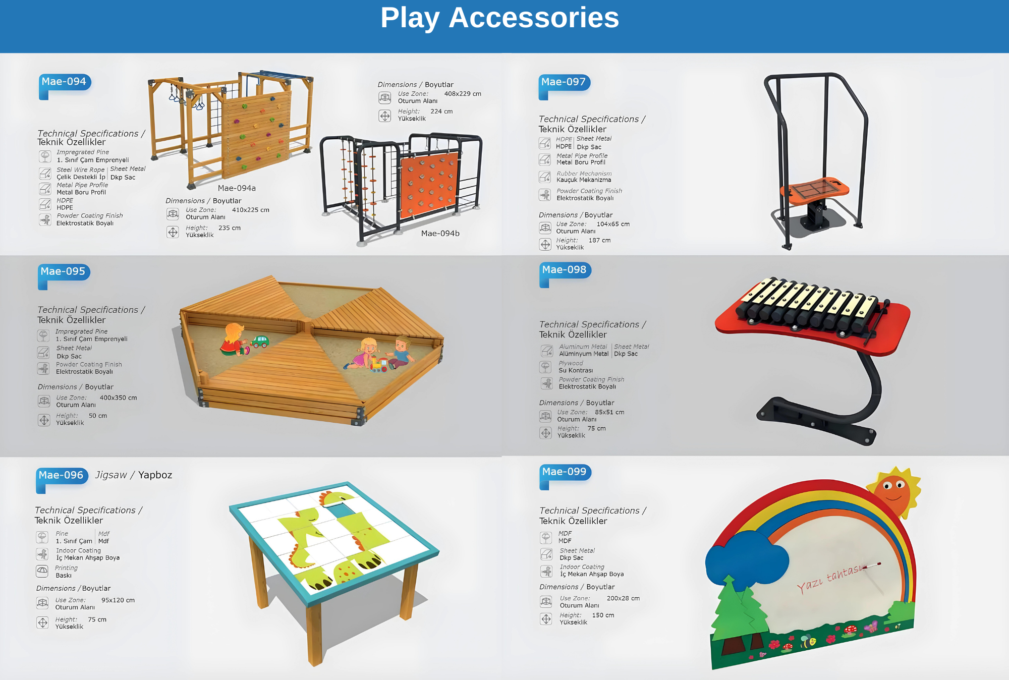 Enhance your outdoor play area with Nova Play Turkey’s Play Accessories, thoughtfully designed to complement and enrich your existing playground equipment. Our accessories are crafted to stimulate imagination, encourage social interaction, and promote physical activity, ensuring that every play session is both enjoyable and beneficial.