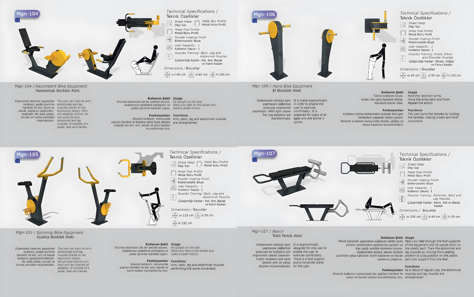 Nova Play Turkey olarak, açık alanları dinamik birer spor alanına dönüştüren dış mekan spor ekipmanları tasarlıyor, üretiyor ve tedarik ediyoruz. Modern Spor Ekipmanları Serimiz; güç, kardiyo ve calisthenics (vücut ağırlığı) antrenmanlarını bir araya getirerek parklar, okullar, site yaşam alanları ve halka açık spor bölgeleri için ideal bir çözüm sunar.